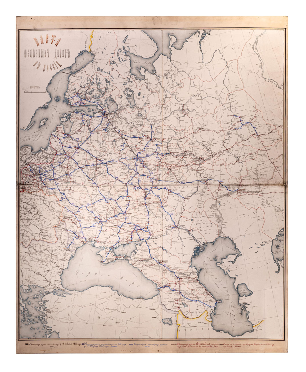 3. Карта России с показанием железных дорог, построенных, строящихся и правительственные изыскания. Из альбома «Приложение к Отчету МПС 1855-1880 гг.»