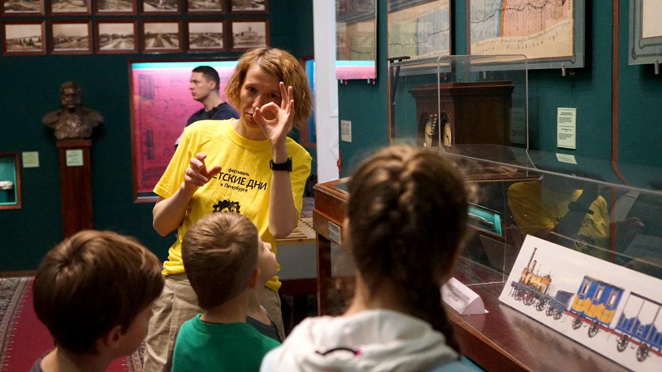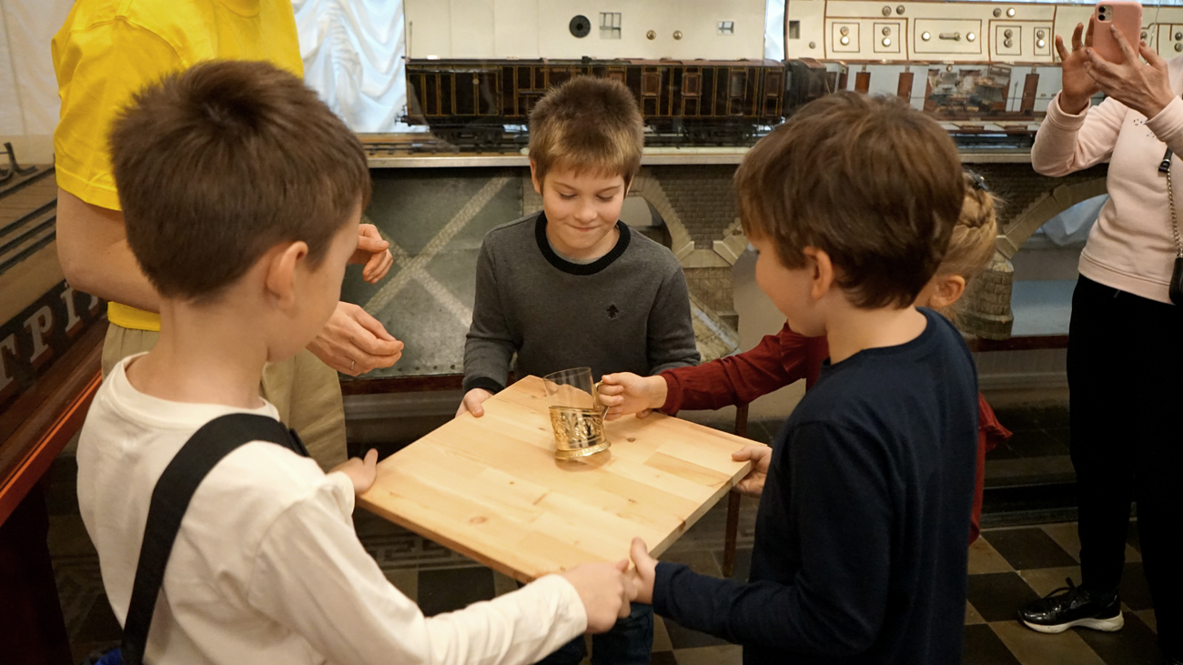 В программе действующие модели музея дополненные весёлым интерактивом: 350 миллионов лет у вас в руках, поймай убегающий стакан, сломай полуторасантиметровый лёд, собери сигнальный знак, притормози вагоны и, конечно, стань машинистом!