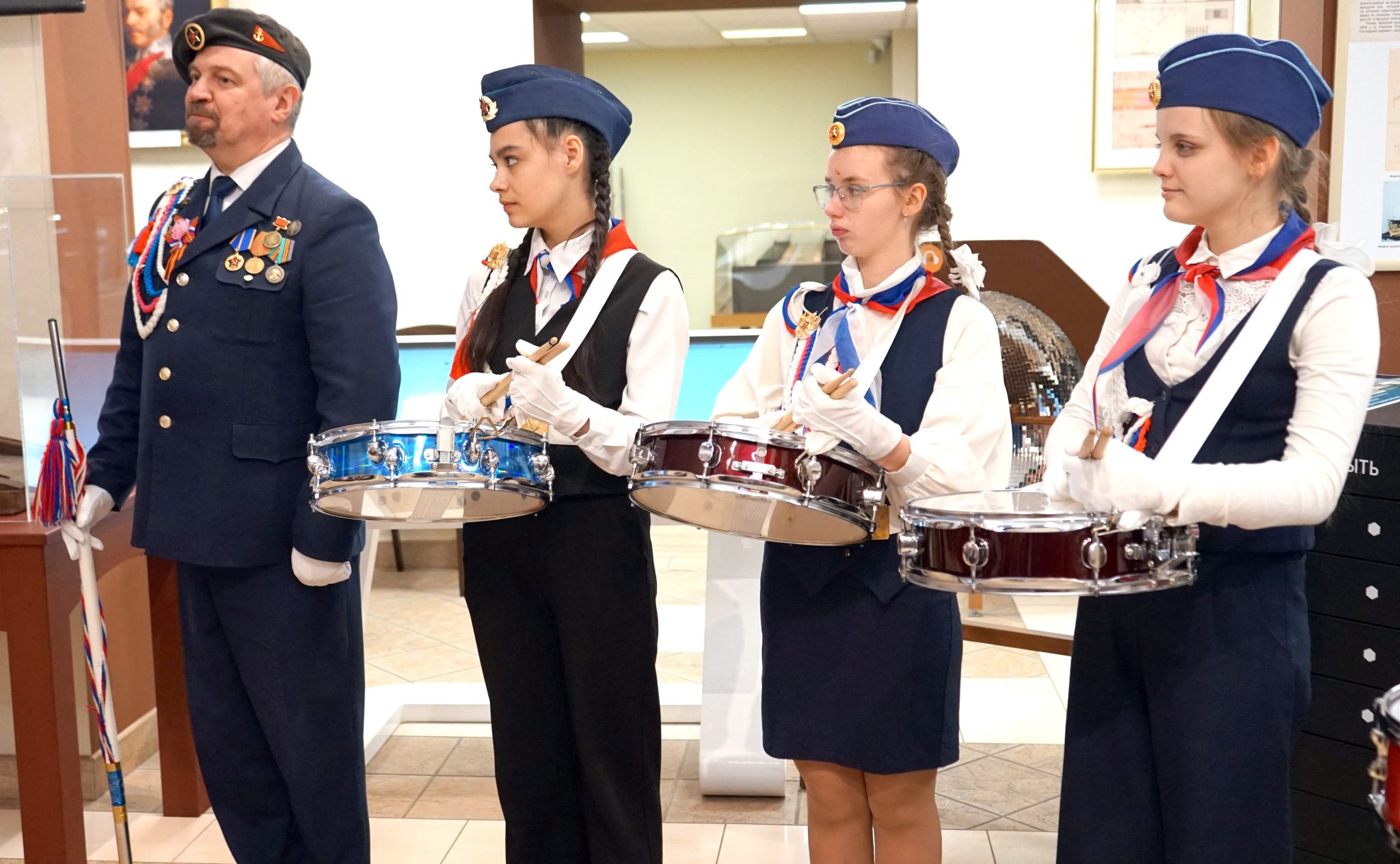 Ярким началом мероприятия стало выступление сводного отряда барабанщиков детского объединения «СМиД». Под руководством Дениса Николаевича Голубева, руководителя школьного музея гимназии № 293 имени Валентины Степановны Гризодубовой, юные музыканты задали торжественный тон всему празднику.