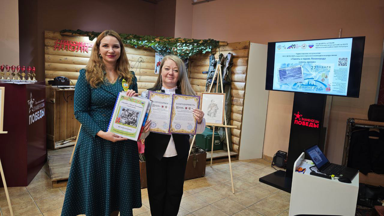 К торжественному событию — Дню полного освобождения нашего любимого города от блокады приурочено награждение победителей открытого городского конкурса видеороликов «Память о героях Ленинграда сквозь время», которое прошло в Центре «Знаменосцы Победы». Ребята из 7 районов Санкт-Петербурга приняли участие в мастер-классе по созданию блокадной ласточки, символизирующей надежду на Победу и стойкость русского духа. Всем победителям наши соорганизаторы, ГБОУ Начальная школа — детский сад №678 Красносельского района вручили книги об основных датах и символах блокады.