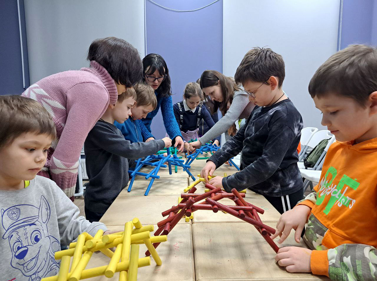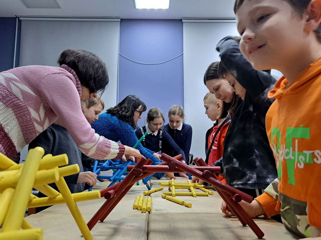 Большинство его проектов так и остались на бумаге, но по сохранившимся чертежам можно оценить полет его творческой мысли. На мастер-классе ребята вместе с родителями воплотили в жизнь одну из идей Леонардо – сооружение деревянного моста, который строится без гвоздей и позволяет соединить любые берега. Было здорово наблюдать, как сначала осторожно, а потом всё увереннее юные инженеры собирают мостики, а потом с восторгом испытывают их на прочность. Когда деревянные конструкции выдерживали серьёзный вес, в глазах детей читался настоящий восторг открытия. И это самое ценное — увидеть, как теория из книг превращается в осязаемый,работающий результат. Это было здорово, весело и очень вдохновляюще!