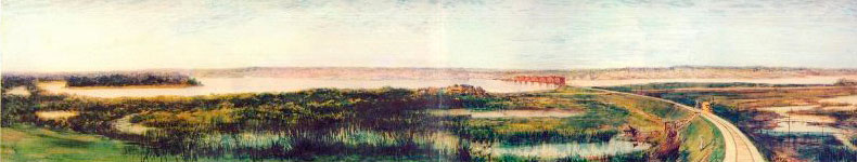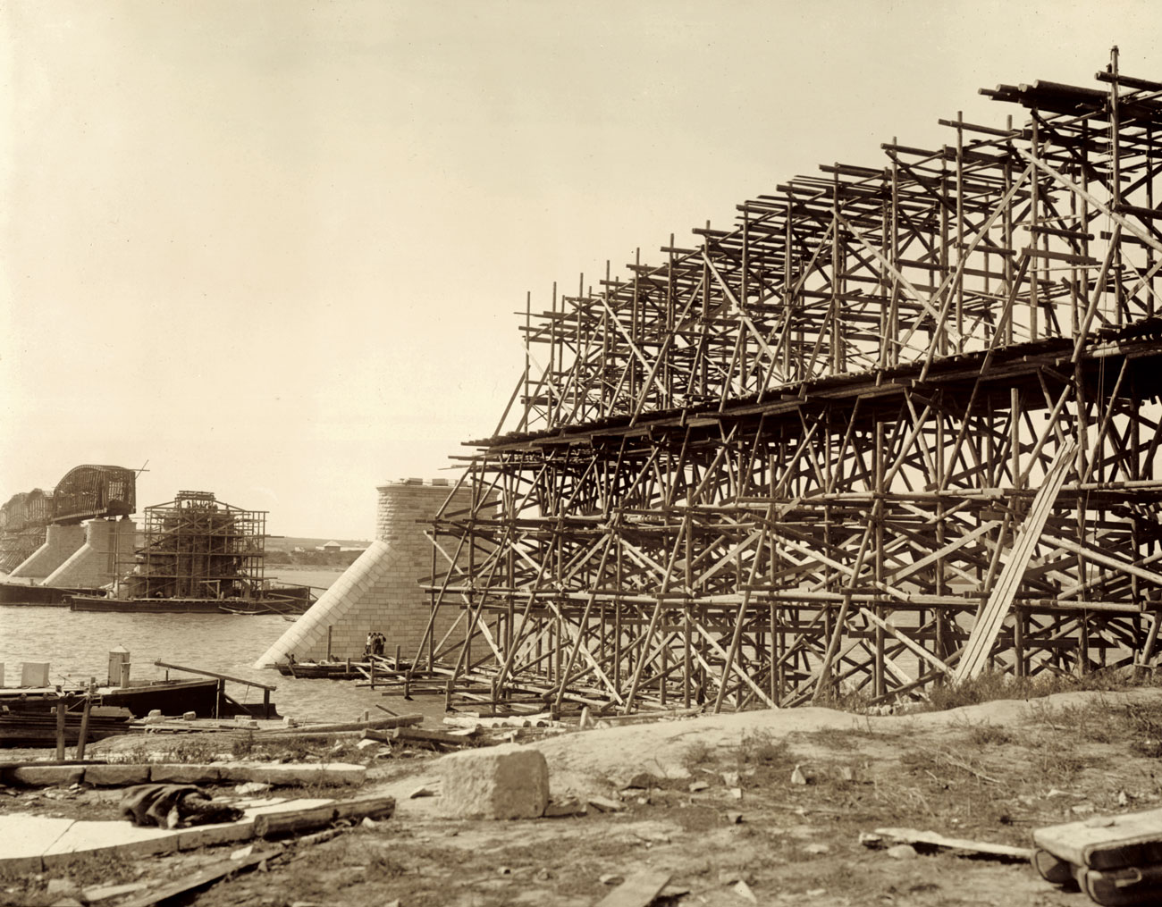 1. Постройка моста через реку Обь с правого берега. Западно-Сибирская железная дорога. 1890-е гг.