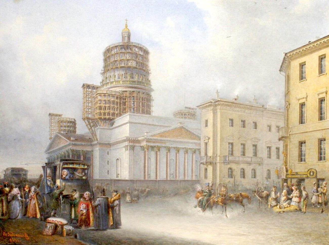 Картина: Василий Семенович Садовников. Отправление дилижанса с Исаакиевской площади. 1841 акварель. Взято из книги музейной коллекции «Всемирное наследие Бетанкура: учебное пособие. И.П. Киселев, А. Ю. Панычева» 2022 года.