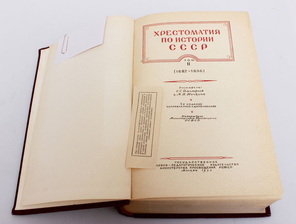 На выставке, посвященной И.П. Кулибину, которая работает в Музее мостов, есть любопытный экспонат – «Хрестоматия по истории СССР» 1953 года издания. Содержание учебника современного читателя может привести в полное изумление. Здесь публикуются для изучения в старших классах школы невероятно сложные и неординарные источники. В том числе и автобиография изобретателя И.П. Кулибина. Автором учебника является величайший историк нашей страны Мелица Васильевна Нечкина. Профессор, академик Академии наук и Академии педагогических наук СССР, она стояла у истоков советской исторической науки.