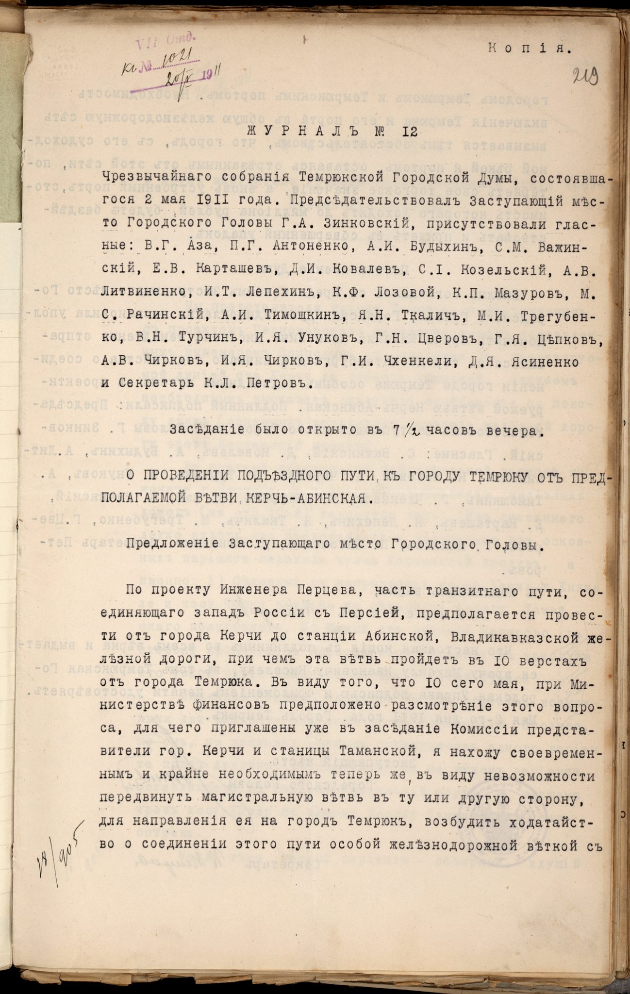 Первые исследовательские работы были осуществлены в период 1903–1906 годов. Основной целью строительства являлось создание железнодорожного сообщения между Крымским полуостровом и территорией Тамани.