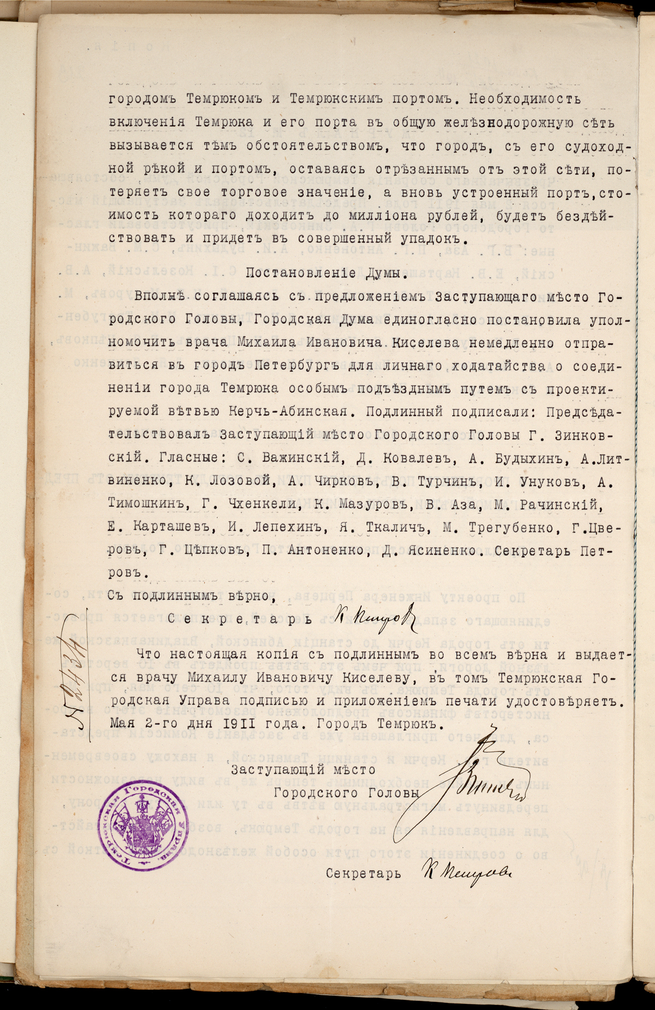 Важную роль в проектировании переправы сыграл выпускник Института инженеров путей сообщения Николай Николаевич Перцов. Он составил два варианта прокладки переправы. Северный вариант предусматривал направление от Керчи через Еникале к косе Чушка с последующим движением вдоль северного побережья Таманского полуострова. Южный маршрут предполагал путь от станции Багерово через самую узкую часть пролива, далее через косу Тузлу к Таманскому полуострову.