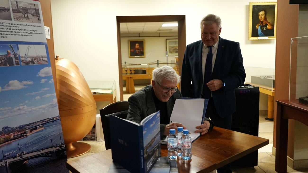 Автор книги — заслуженный строитель РФ, профессор кафедры «Мосты» Петербургского государственного университета путей сообщения Императора Александра I, Геннадий Иванович Богданов — выступил перед гостями. Он подробно и с трепетом рассказал об истории создания и всех этапах реконструкции переправы, связывающей Василеостровский и Петроградский районы.