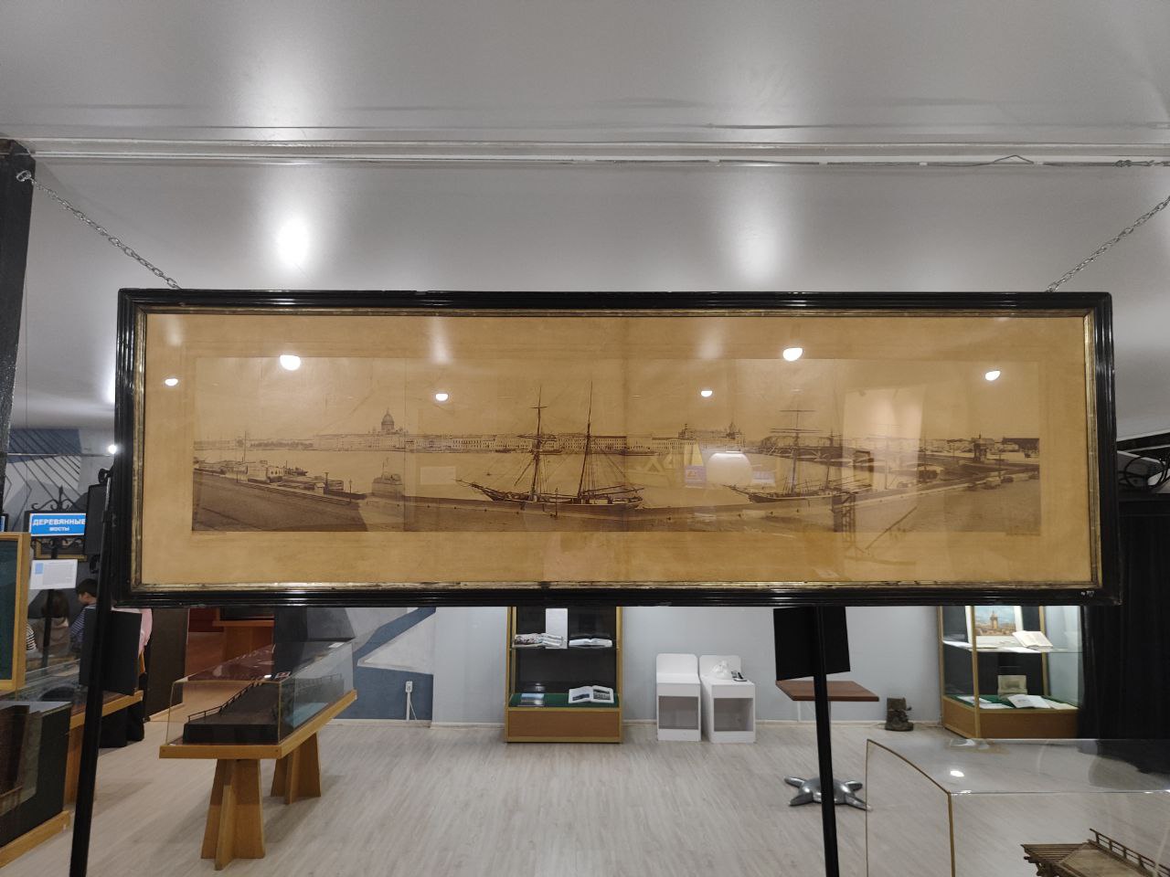 В рамках мероприятий, пресвященных 175-летию первой постоянной переправы через Неву, подлинник первого панорамного снимка Благовещенского моста из фондов переместился в экспозицию.