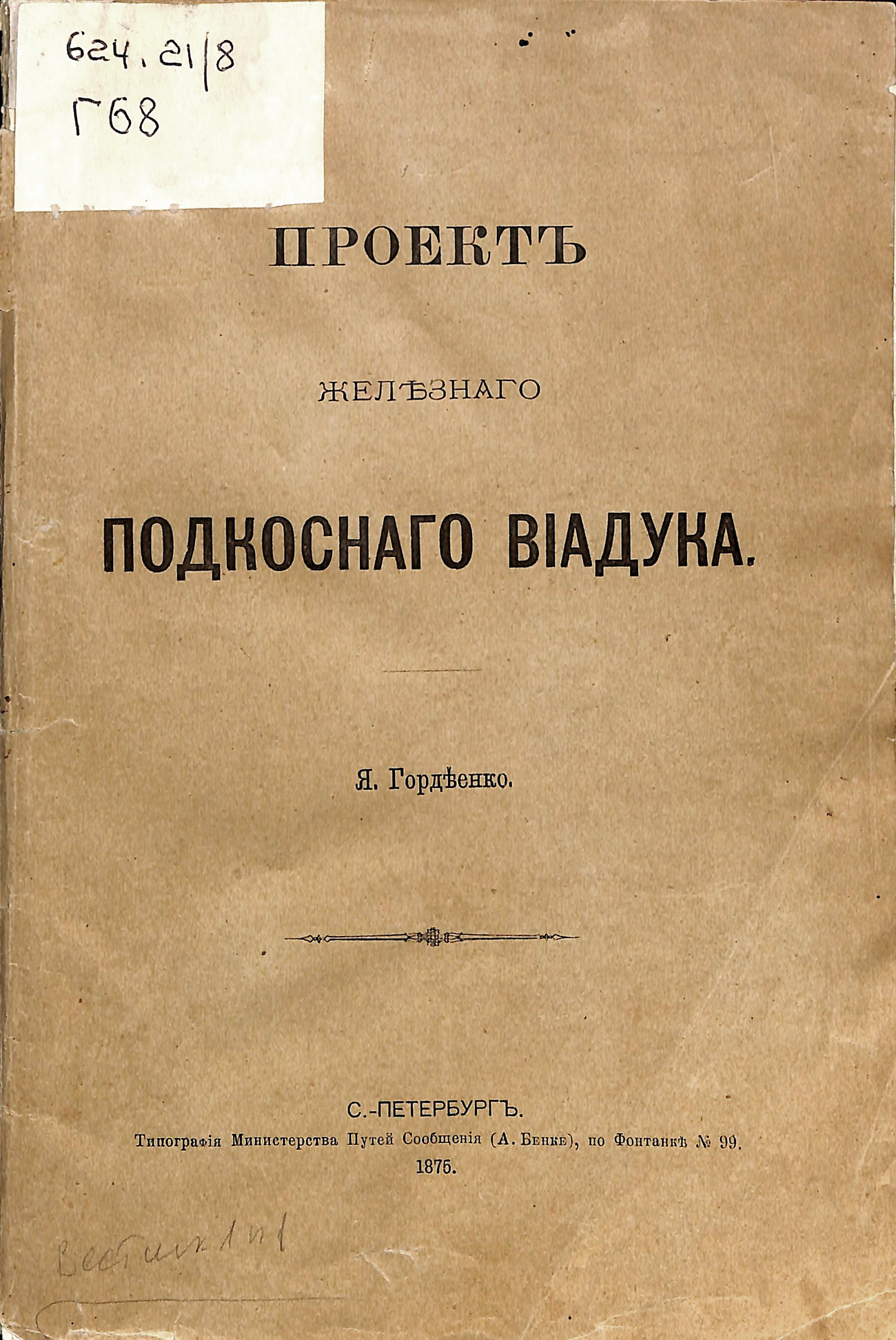 3. Брошюра. Гордеенко Я.Н. Проект железного подкосного виадука. СПб, 1875 г. ЦМЖТ КП Б-1021.