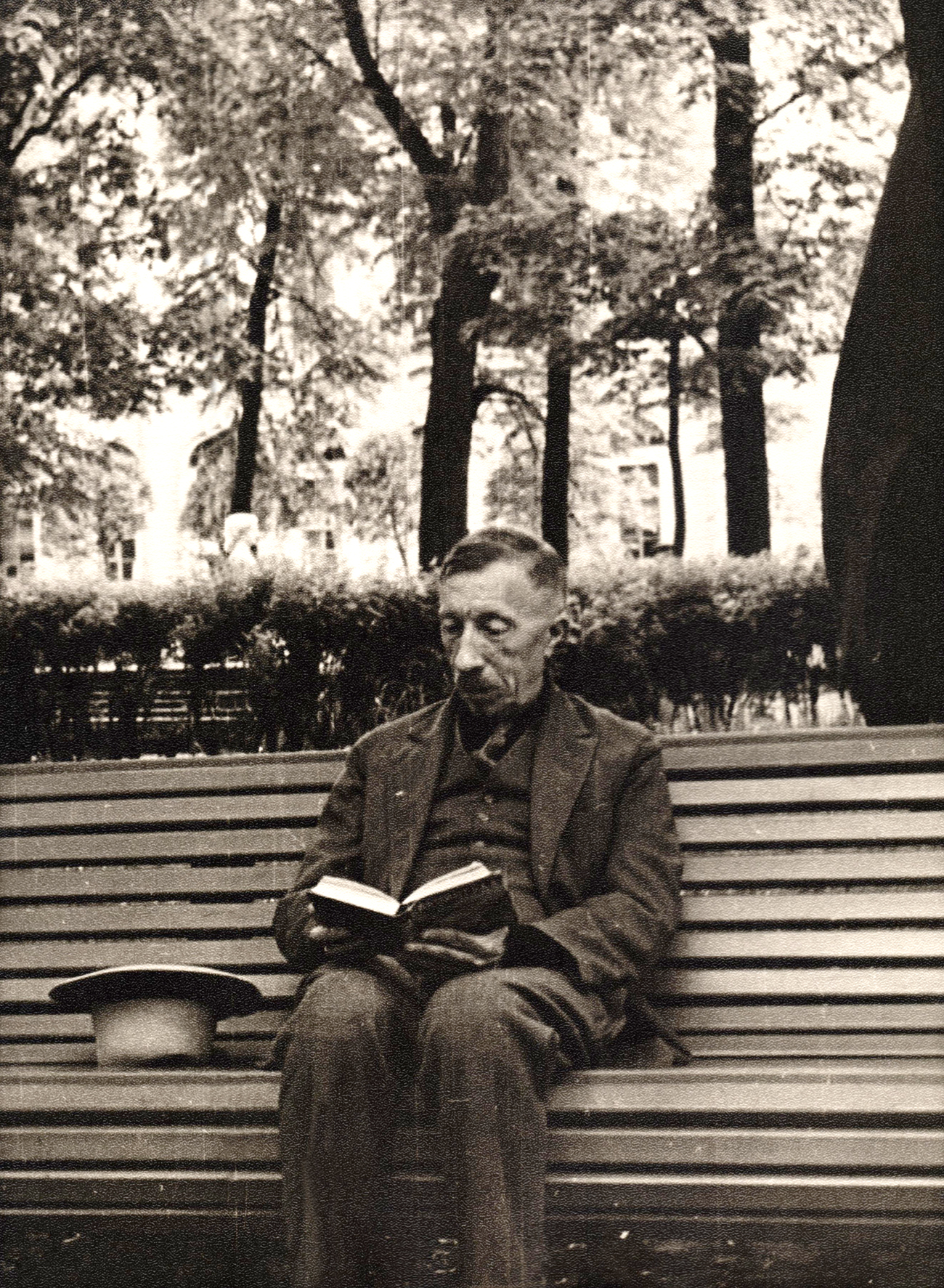 8. Фотография. Петр Яковлевич Гордеенко на скамейке в парке. 1957 г. ЦМЖТ КП-6225/24.