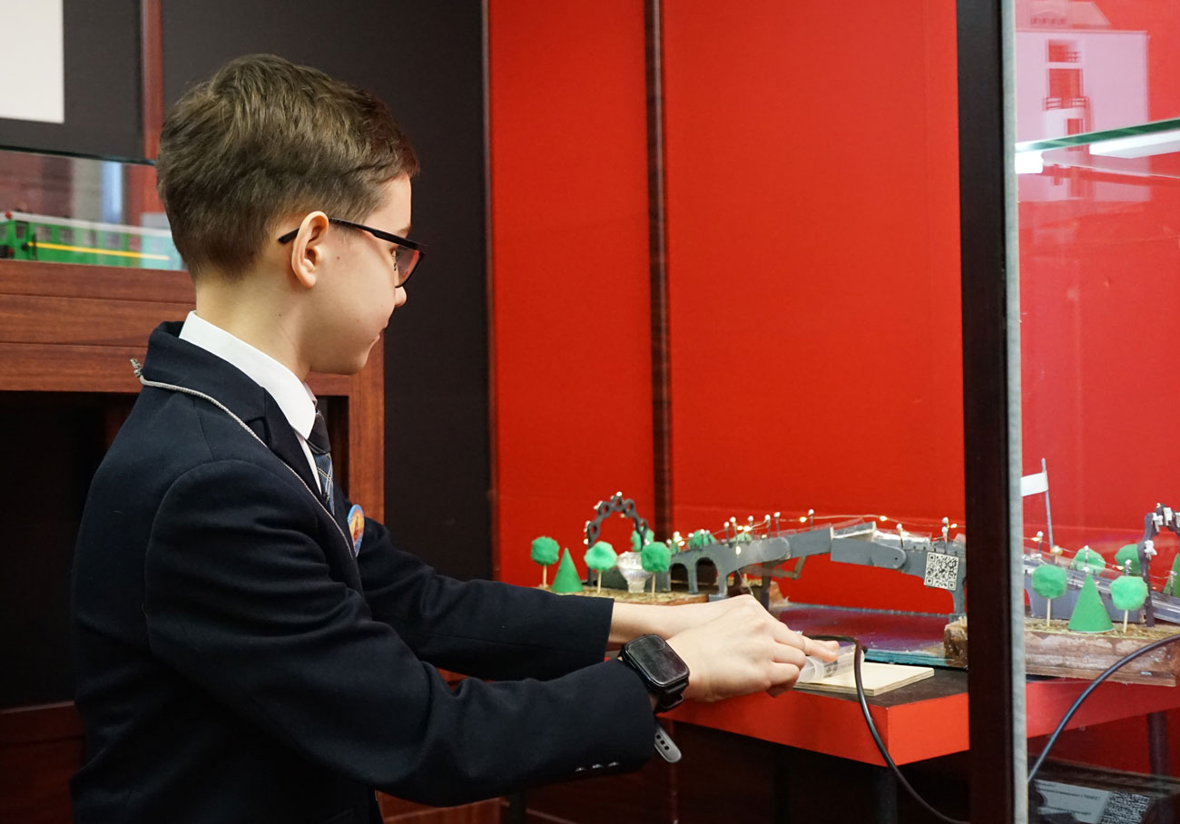 В дни фестиваля «Техническая модель — Санкт-Петербург» свои работы представляют не только опытные мастера, но и совсем юные участники. Один из них — Михаил Трубачёв, ученик 4-го класса школы № 219 Красносельского района. Миша привёз на выставку не просто модель, а настоящий исследовательский проект: макет «Умный разводной мост».